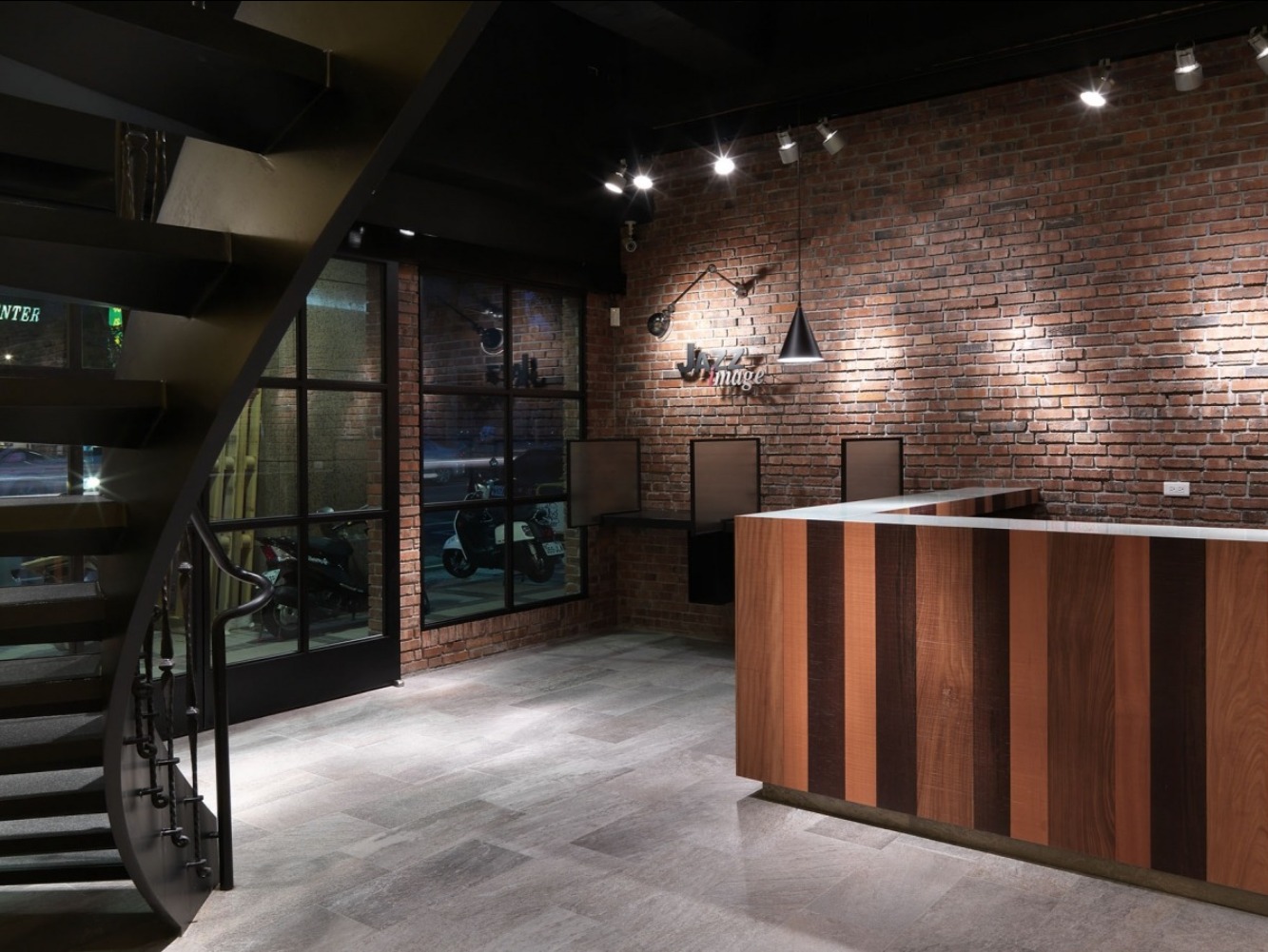 Jazz影像 最高級的影像器材、最專業的技術,將過去的時間,保留在現在,是爵士影像一貫的堅持。對於一個"老"的影像公司,如何以創新又兼具品味的面貌帶給大家。 坐落位置台中 規劃面積51坪 "爵士"帶給人的第一印象,紐澳良、爵士樂,那我們就用JAZZ的故事來發想。 整體以懷舊、復古、美式風格,火燒紅磚、黑鐵件、鍛造樓梯、板岩地磚、外露空調管、復古鐵件燈具、拼接木塊營造出特殊的風格,有別於一般的沖印店。專業的店吸引專業的人士到來,在爵士與咖啡香的氛圍下,讓你在時空背景的錯置中欣賞自己拍的作品,慢慢呈現出來。 READ MORE