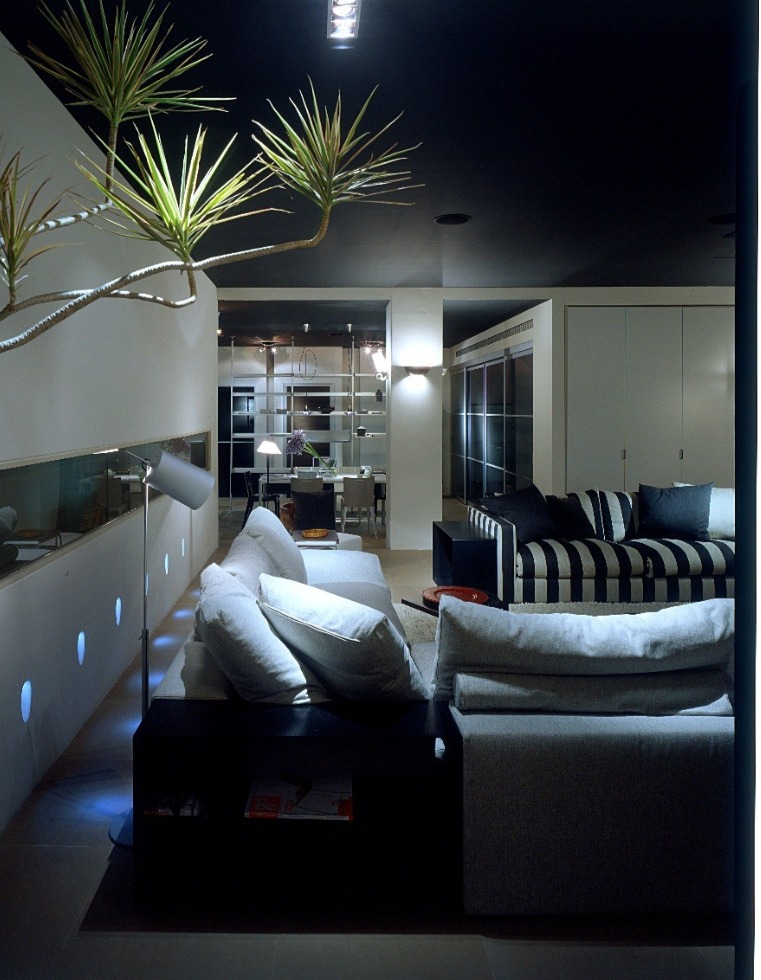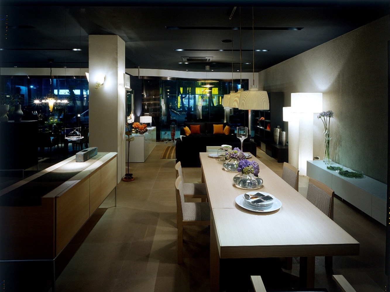 首先,由鄰近櫥窗,意味對內並展示向外的情境-客廳與餐廳踅步漸往半私密屬性的臥室,爾後再緩階步下於提供全方位居家妝點諮的晤談區,空間安排的層次體現著經勞者之於動線引導與情境塑造,著實呼應居住實體模擬的細緻入微,而區域中,品牌儘可能以純粹的姿態呈現眼前-Rimadesio的櫥櫃系統與層奇倚牆而置於晤談間、FLEEXOFORM的沙發及配件擺放在客廳的區域、Molteni & C的床組與推薦商品則分置餐廳和臥室情境間裡;相對著將產品展示區域分配的純粹精粹之外則是色彩與品項足以混搭的豐富感,可以是米色與黑色的搭合、可以是金屬與皮革的交錯使用,尤其當畫面一轉,是晤談人員悉心為消費群的全方位諮詢服務時,諮詢室裡、展示間裡更可以是除了銷售解說之外的自若相處:一杯可供淺酌的小酒,客廳沙發區裡就是一下午的閒散體驗;赤著足緩步臥室區地毯上,體貼入心若當下足底的感受就是那樣的真切…,所有產品與產品之間、晤談的對話之間將激盪出的是關於居處和生活面向的全面提示,當下展示間不單只是展示間,更可說是框景裡不慍不火、極簡之中人性溫潤仍存的生活場域。