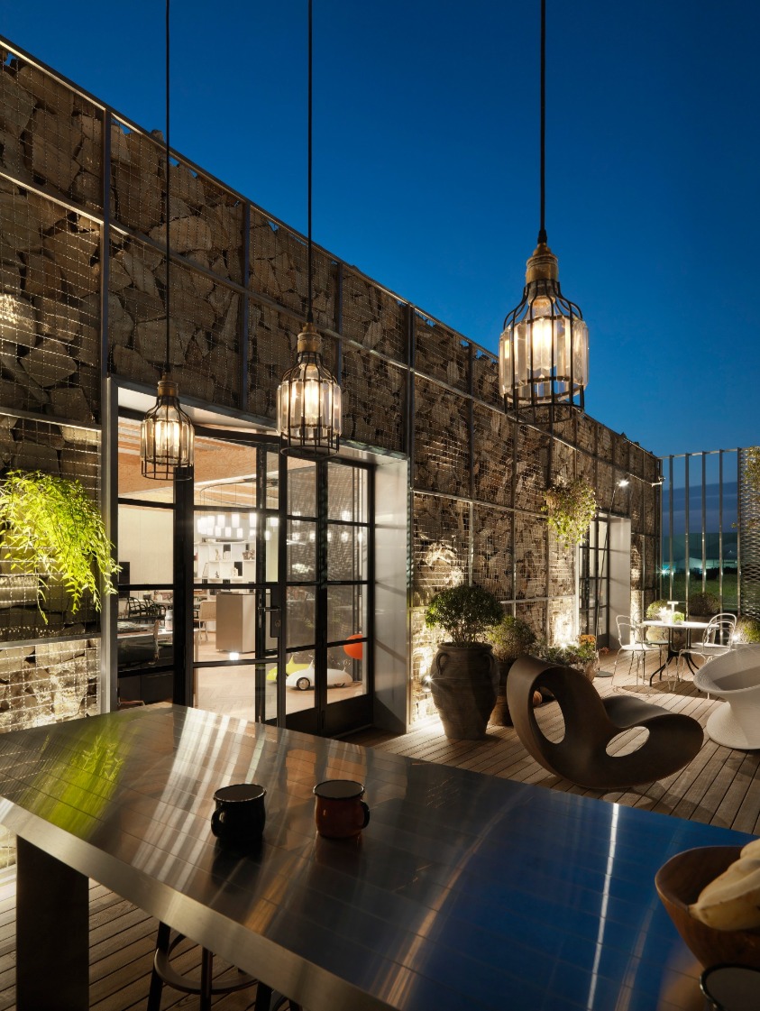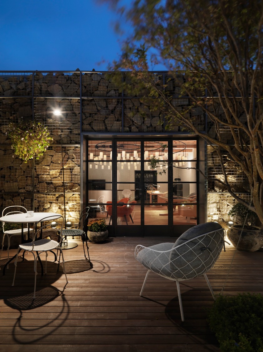 遠離城市的繁雜與華麗,回歸純真自然環境,讓設計本質更加純粹簡單,延續以人為本、取法自然的理念。由廢棄倉庫改造而成的辦公室,以天然石塊層層堆疊與光影線面構築,無過多繁複設計融合周圍環境,自然元素巧妙顛覆工作場域的刻板印象。