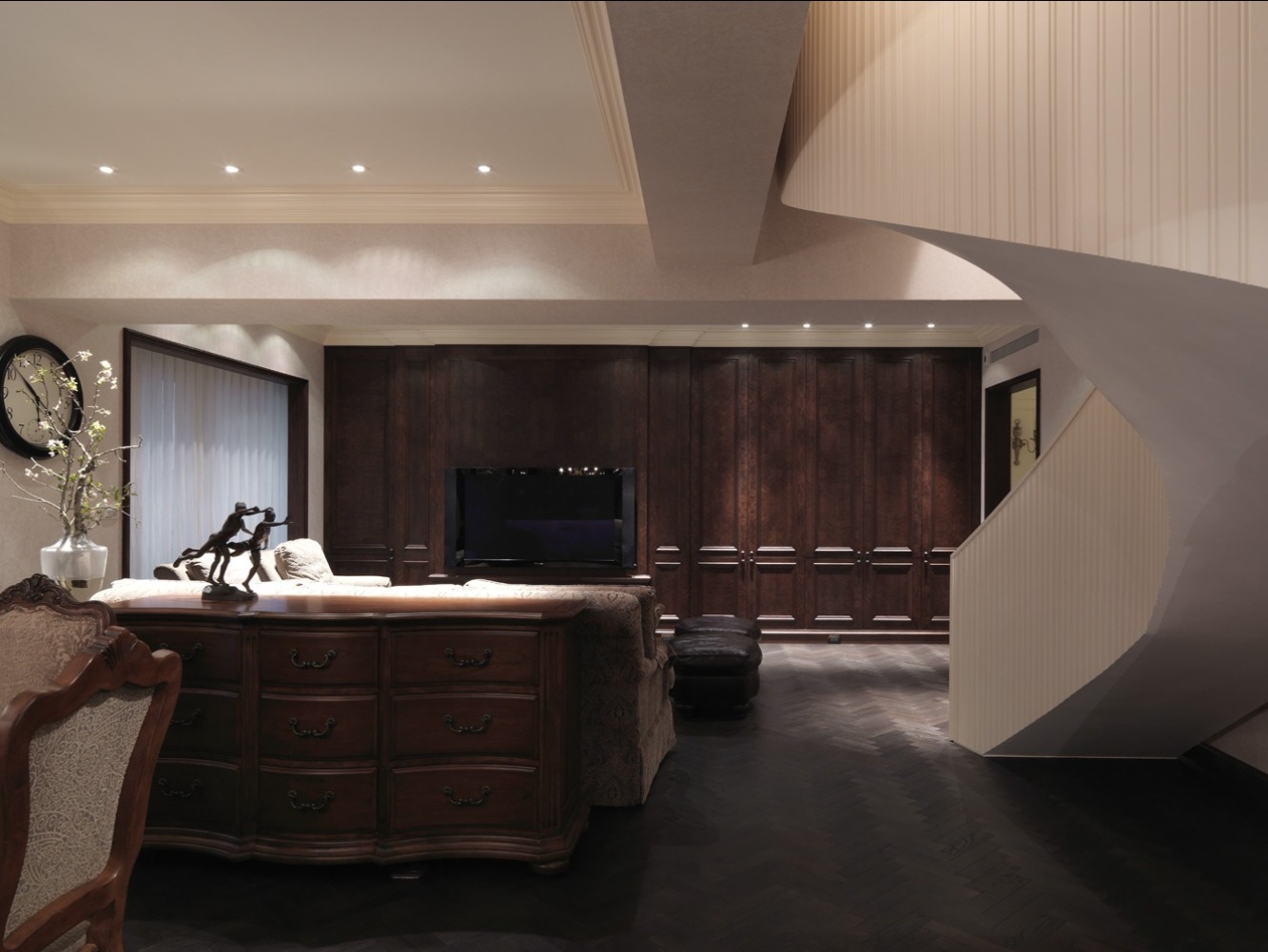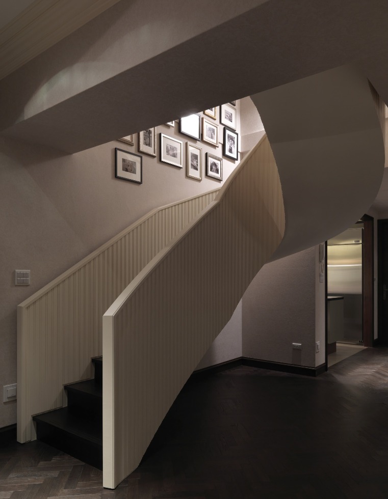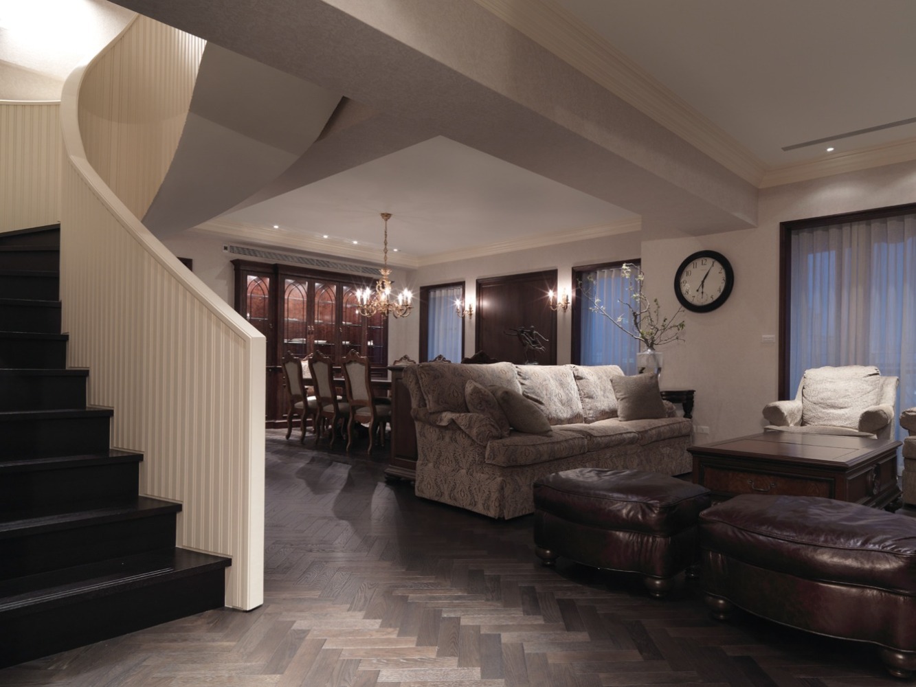 大器的弧形樓梯連接上下空間,完美的曲線是家的靚麗風景,猶如一件藝術品擺在家的一邊。
